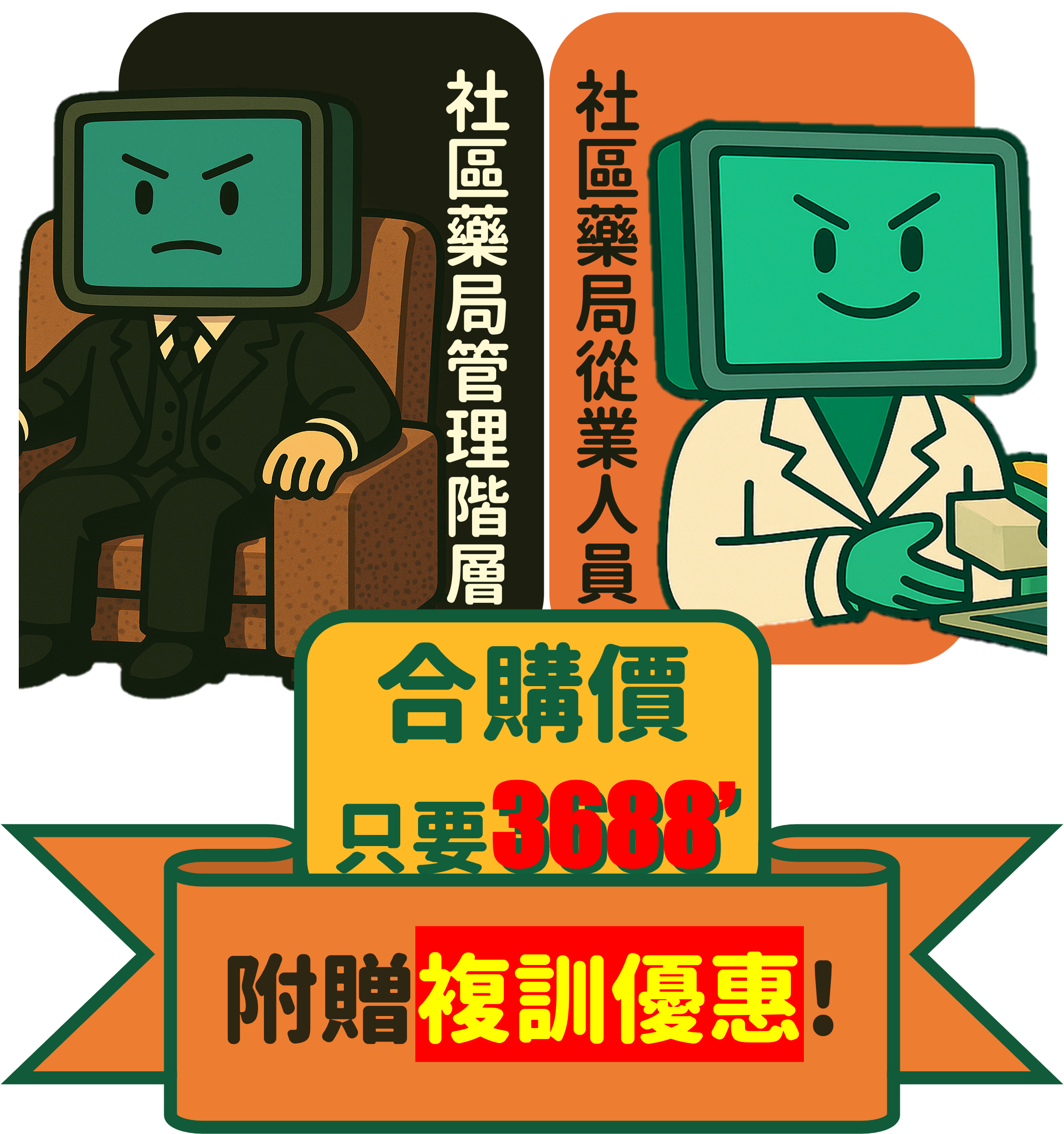 - 🧭 打造組織分工與人才階梯,真正讓藥局自動運作不再校長兼撞鐘,讓你重新找回「老闆該有的時間與視野」。